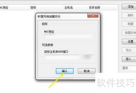 3、 输入目标MAC地址及可选参数,点击确认按钮。