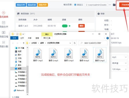 4、 第四步完成后,所有ac3音频均已成功转换为mp3格式。