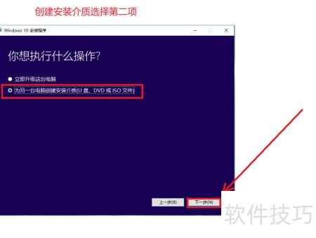9、 选择为其他电脑制作安装介质(U盘、光盘或ISO文件)。