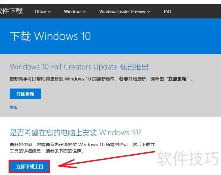 2、 搜索windows 10媒体创建工具,进入微软官方网站的下载页面,点击立即下载工具即可获取安装程序。