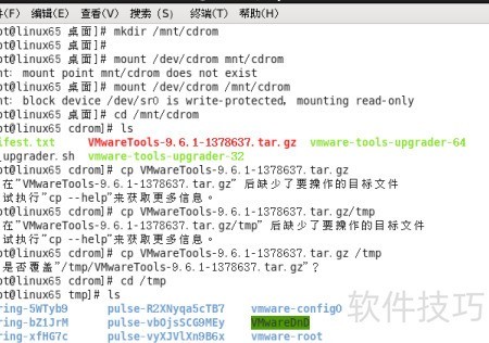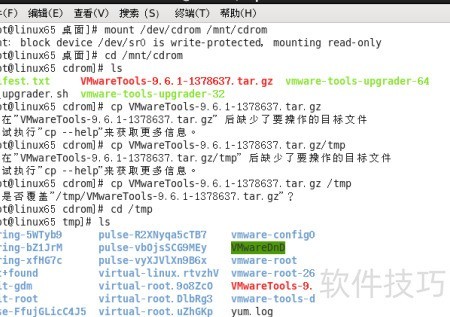 9、 将 VMwareTool-9.6.1-1378637.tar.gz 文件使用 tar 命令解压缩,提取其中全部内容。