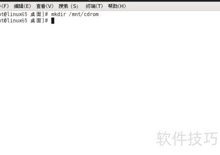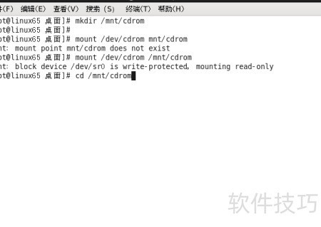 5、 将光盘设备 /dev/cdrom 挂载至已创建的目录 /mnt/cdrom,使其中的内容可被访问和使用。