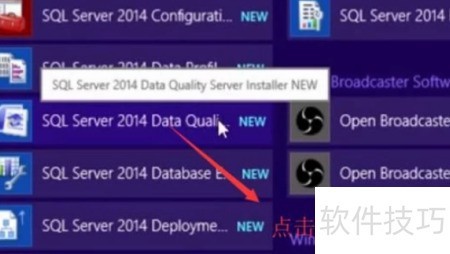 5、 接着打开开始菜单,找到并点击SQL Server 2014 数据质量服务器安装程序 NEW选项,具体操作所示。