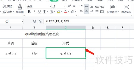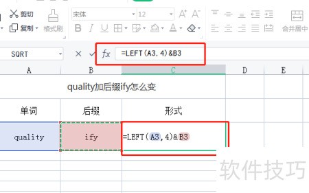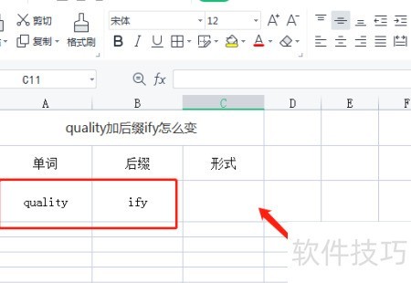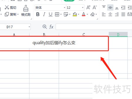 2、 在空白单元格中输入quality并添加后缀ify,所示。