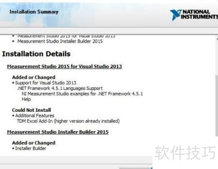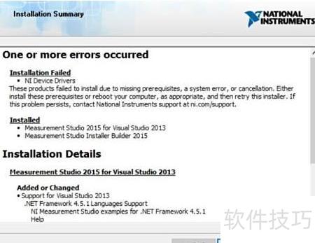 12、 安装摘要显示,因未安装所需驱动程序,系统提示安装失败—NI设备驱动。