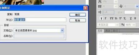 2、 进入软件右下角的图层界面,右键点击背景选择复制图层,在弹出窗口中为新图层命名,若不想更改可保留默认名称,最后点击确定完成操作。