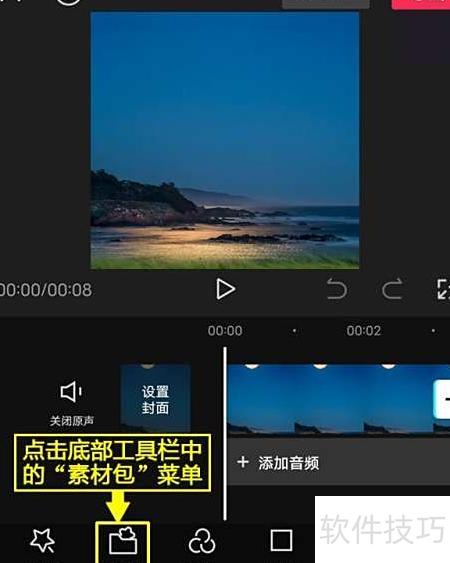 5、 点击底部工具栏的素材包选项进入。