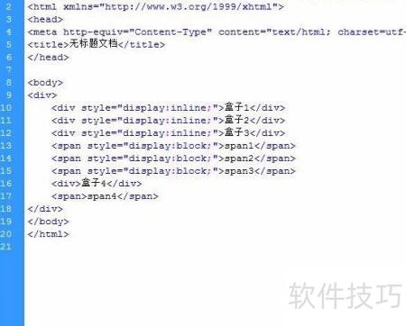 1、 创建新文件时可定义两类盒子:div为代表的块级元素和span为代表的行内元素。
