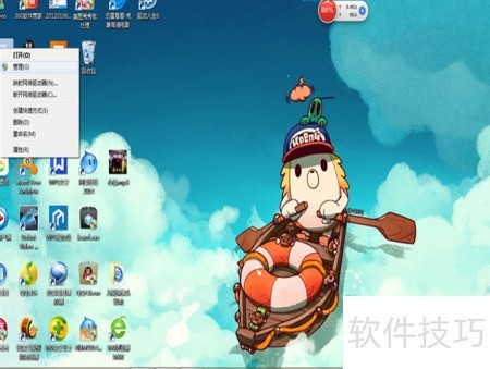 2、 右键点击桌面上的计算机,选择管理选项。