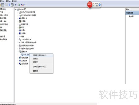 3、 在计算机管理界面左侧,双击打开设备管理器,于右侧找到并展开图像设备,右键点击其中的USB视频设备,选择更新驱动程序软件进行驱动更新操作。