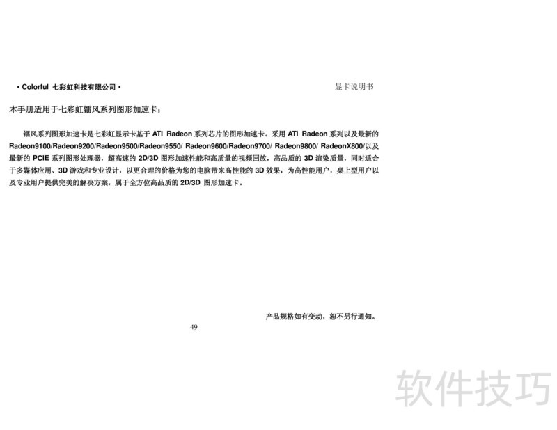、 本文是七彩虹ATI镭风显卡的使用指南,详细说明产品操作步骤及常见问题处理方法。