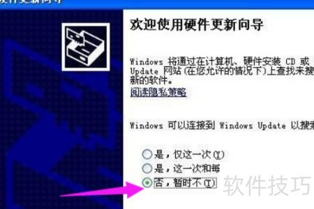 3、 弹出向导后选择否,暂时不,点击下一步,选从列表或指定位置安装,再点击下一步继续操作。