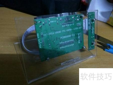 6、 将泡沫胶贴于亚克力板另一侧,使液晶屏背面与板体紧密粘合。因螺帽位于屏幕一侧且较薄,使用泡沫胶可确保稳固贴合。随后将液晶排线准确插入驱动板的排线槽中。完成上述步骤后,整个改装过程即告结束。