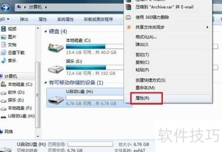 6、 返回电脑主界面,右键点击U盘图标,选择弹出菜单中的属性选项即可。
