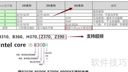 1、 目前主流的英特尔芯片组为300系列,按定位从低到高分别为H310、B360、H370、Z370和Z390。其中,Z系列支持超频功能,但需搭配后缀为K的处理器才能实现。