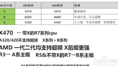3、 AMD最新的400系列目前仅推出X470和B460两款,A420尚未发布。在超频支持方面,A系列不支持超频,而X系列性能表现优于B系列,适合追求高性能的用户。