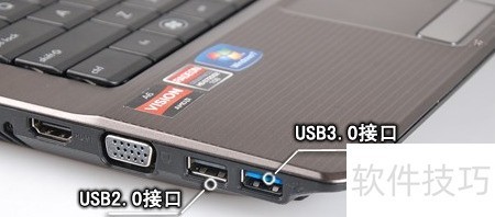 3、 3.0接口常标有SS字样,意为Super Speed,也可能直接注明2.0或3.0以示区别。