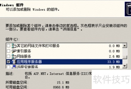 4、 安装IIS组件(即Internet信息服务)是多数会计软件运行的必要条件。可通过控制面板中的添加/删除程序进入Windows组件选项,从中选择并安装IIS组件以满足软件运行环境需求。