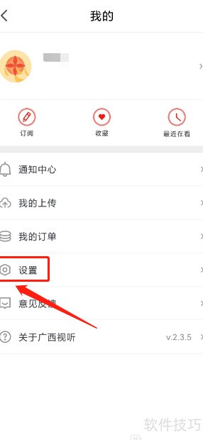 1、 打开广西视听App,进入我的页面,点击设置选项。