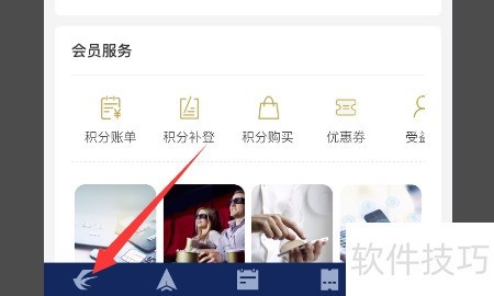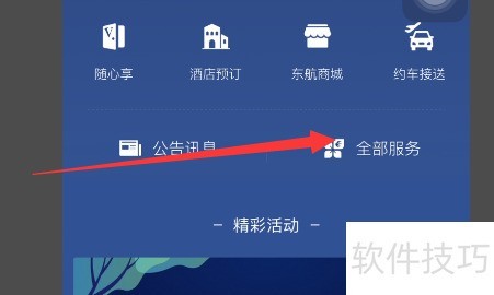 2、 登录东方航空APP后,进入首页并点击相关选项。