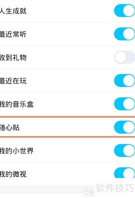 4、 在设置界面中,关闭随心贴右侧的开关选项。