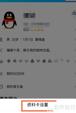 2、 点击左上角头像,进入右上角更多选项,选择资料卡进行设置。
