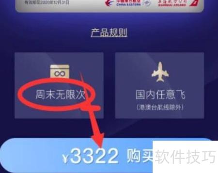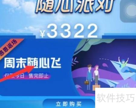 5、 周末随心飞活动中,点击图中购买按钮即可参与。