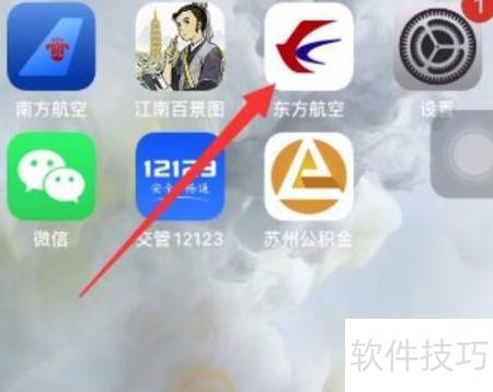 1、 打开手机桌面,找到并点击东方航空应用图标。