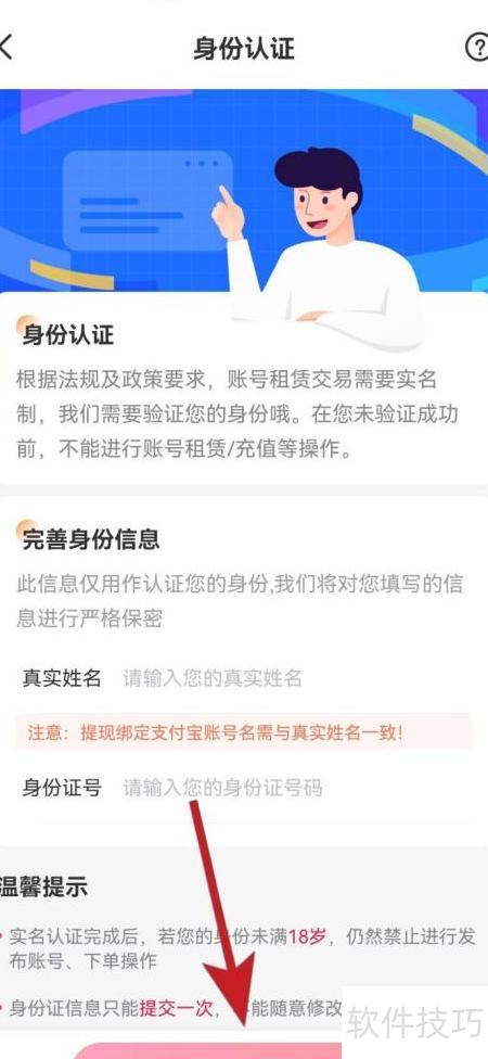 6、 填写身份信息完成实名认证。