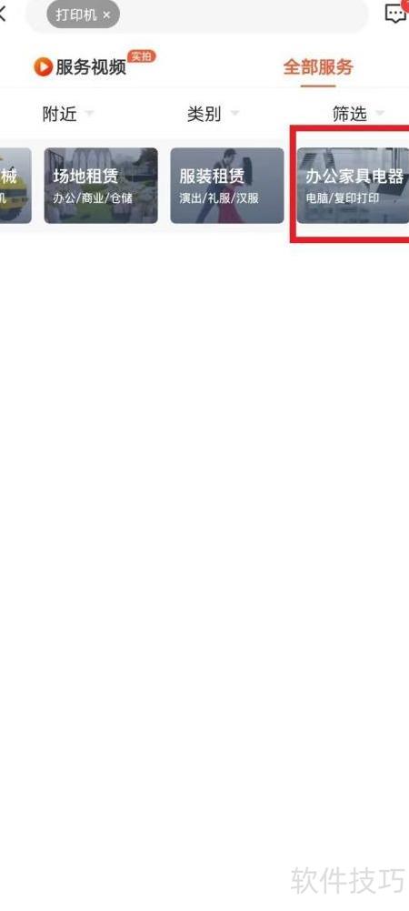 打开58同城App,进入租赁板块的办公家具分类,找到所需打印机并咨询租用事宜。