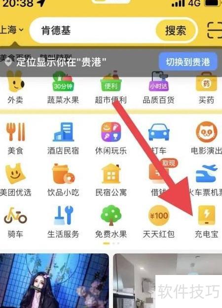 1、 进入美爷番团页面,点击充电宝图标即可。