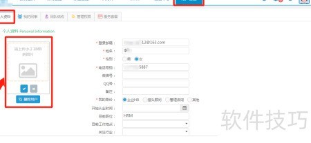 1、 在54HR导航栏中进入用户管理,选择个人资料页面,逐一填写或修改相关信息后保存即可。