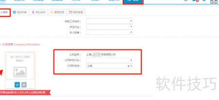 3、 在公司信息页面中,请依次填写相关企业资料,并可选择上传营业执照、个人名片或在职证明等文件。