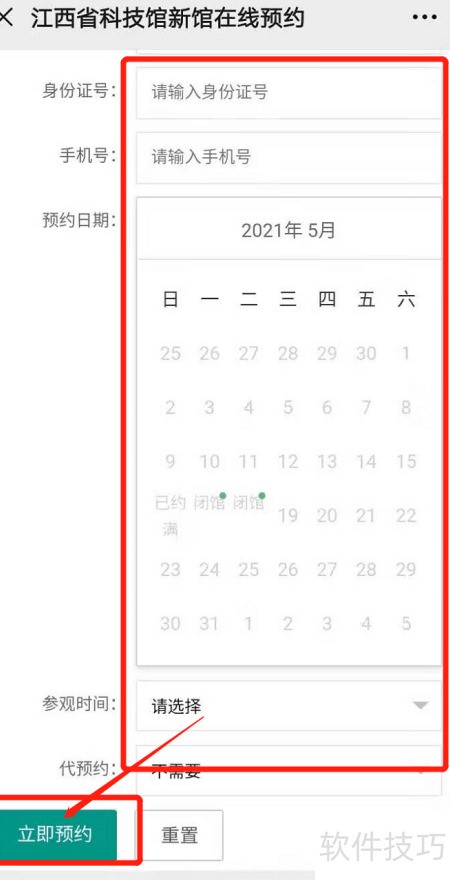 4、 进入江西省科技馆预约页面,选择新馆预约,填写个人信息并提交,点击立即预约即可完成。