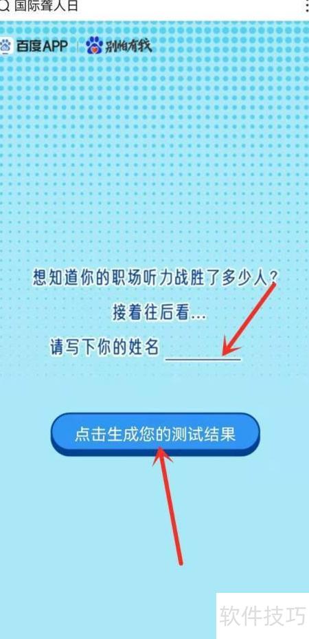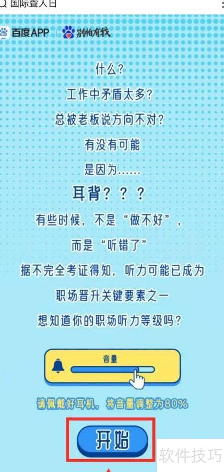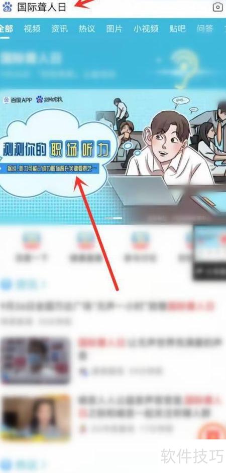 2、 打开百度App,搜索国际聋人日,点击顶部测测你的职场听力图片参与活动。