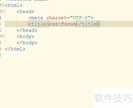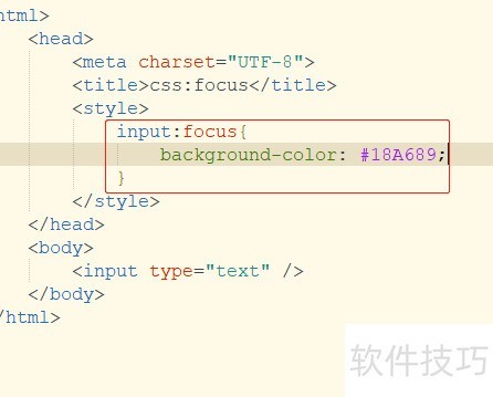 4、 在title标签后添加style标签,通过input:focus选择器定义样式,实现输入框获取焦点时背景颜色改变的效果。