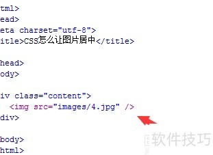 3、 在test.html文件中,于div标签内插入img标签,引用images文件夹中的4.jpg图片作为图像源。