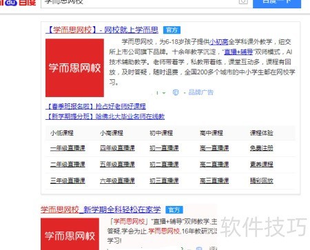1、 打开浏览器,在搜索框输入学而思网校,点击搜索,从结果中选择官方网站进入即可。