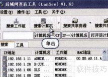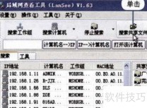 16、 在LanSee工具栏点击搜索计算机按钮,即可在搜索选项卡中查看局域网内所有活跃设备,显示其IP地址、计算机名称及MAC地址等详细信息。