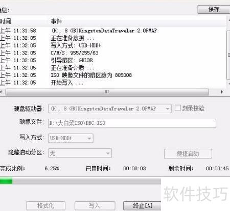 6、 选择USB-HDD+模式,确认后点击写入按钮开始操作。