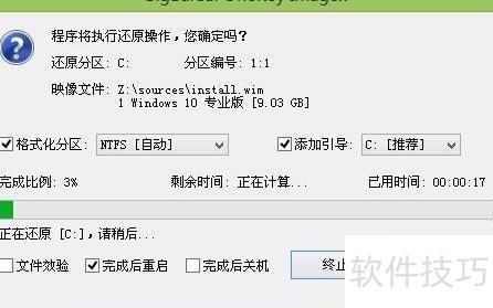 6、 在提示框中点击确认,随后静待系统还原完成即可。