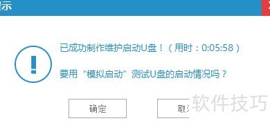7、 制作完成,耗时5分58秒,可根据个人意愿决定是否进行模拟测试,为节省时间,我选择直接跳过。