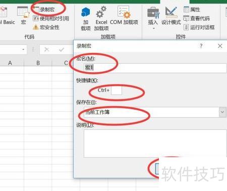 3、 例如,可录制一个宏来执行日常重复性操作,如设定单元格样式或插入日期时间。宏会像录像一样完整记录每一步操作,之后只需运行该宏即可自动完成相同任务。还可自定义宏名称、设置快捷键并选择保存位置,方便随时调用,提升工作效率。所示: