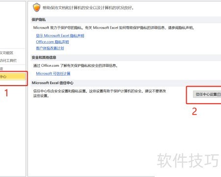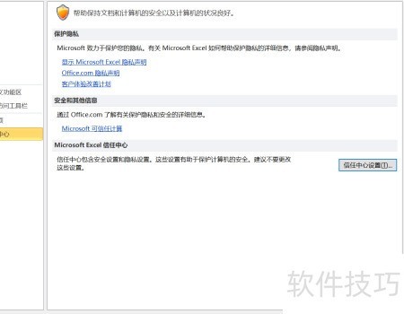 3、 打开Excel选项后,进入信任中心并点击信任中心设置进行配置。
