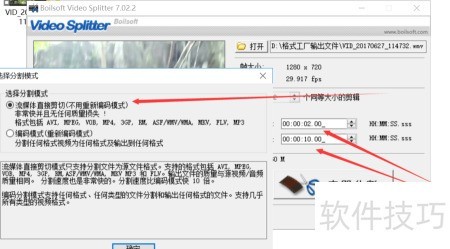 5、 通过左侧预览窗口,可精准掌握分割时间点,例如确定需截取02秒至10秒之间的片段。
