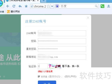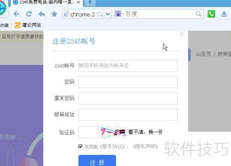 4、 若无2345账号,可按以下步骤注册一个新账户。