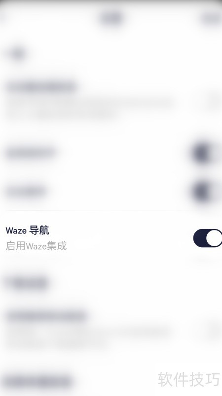 4、 在设置中点击Waze导航右侧的圆点。