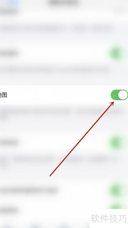 3、 进入隐私安全设置,点击地图选项右侧的圆点