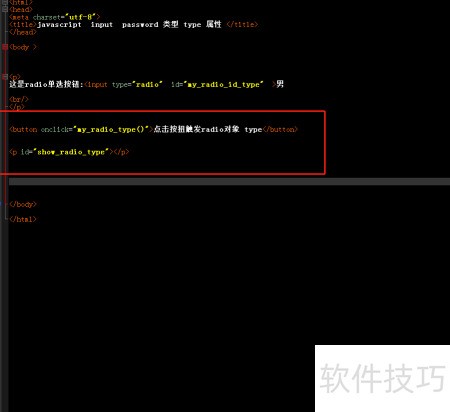 4、 添加一个p标签,并为其设置id属性值为show_radio_type。