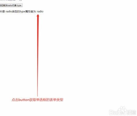 6、 在自定义函数中获取input的Radio对象,通过type属性读取单选框类型,并将结果插入p标签内显示。